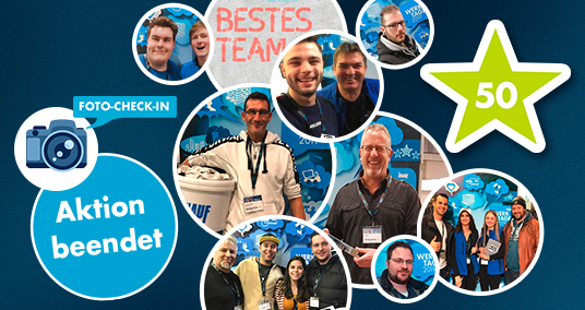 Selfie an der Foto-Check-In-Wand machen, hochladen und 50 STARS kassieren!