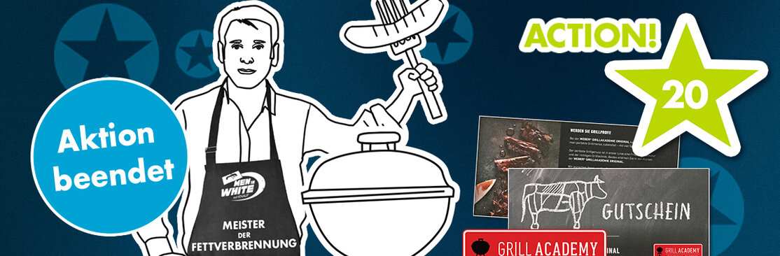 Alle registrierten MEN IN WHITE hatten (bis zum Stichtag 16.08.2017) die Chance, zwei (2) von 20 Gutscheinen für einen Kurs der Weber® Grill Academy im Wert von ca. 230 Euro zu gewinnen. Hier geht es zu den Teilnahmebedingungen.