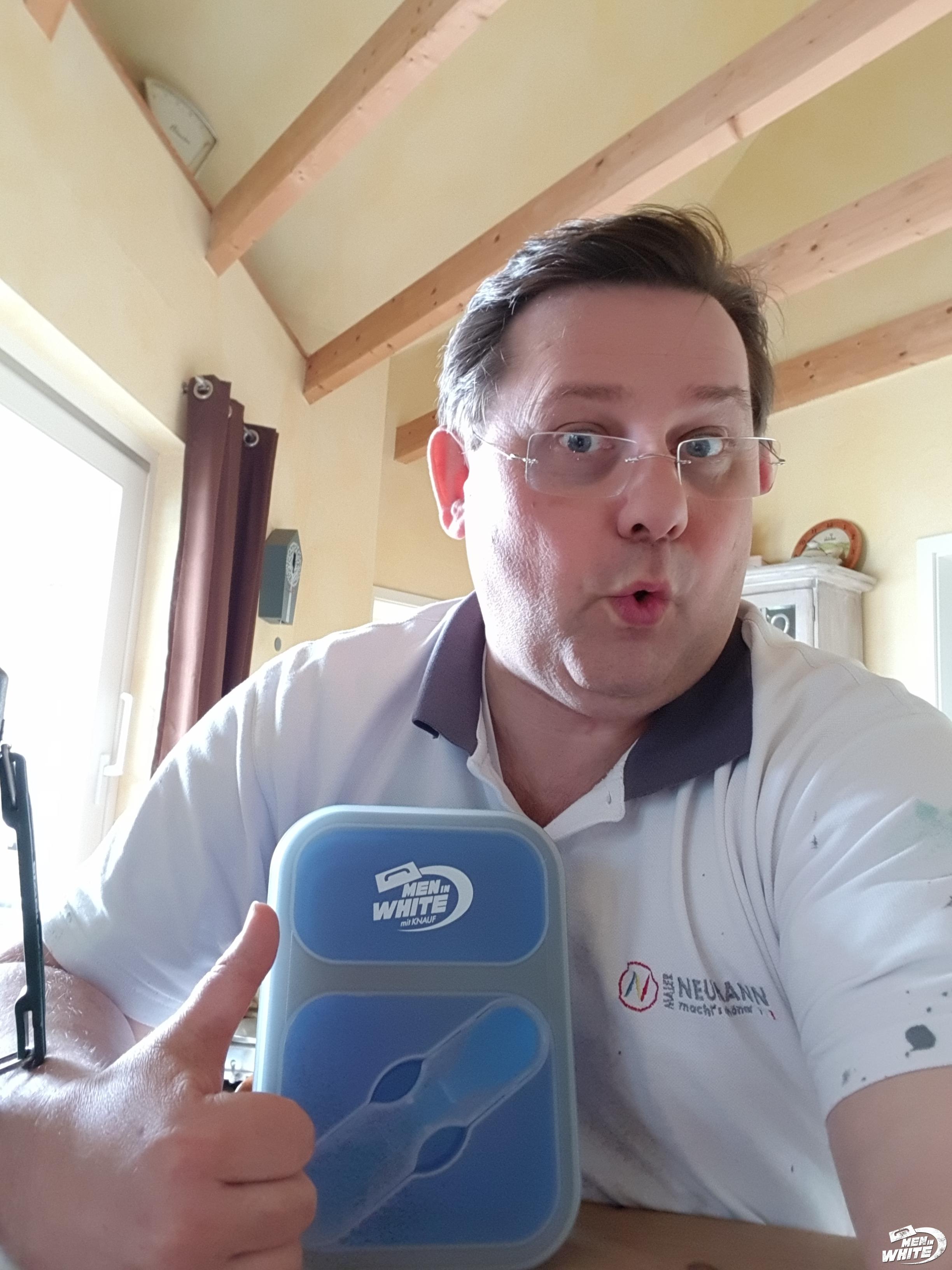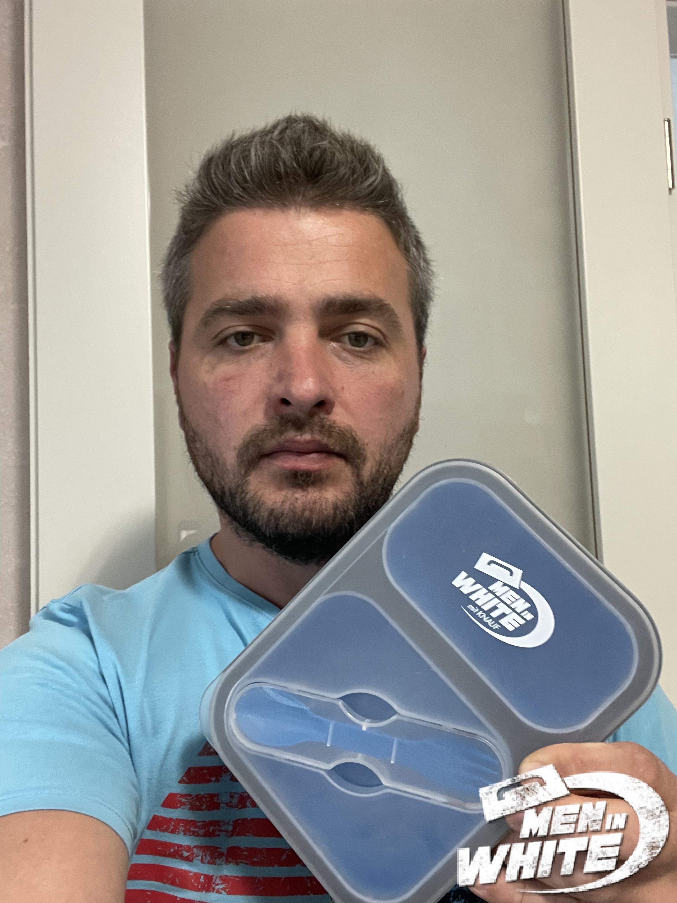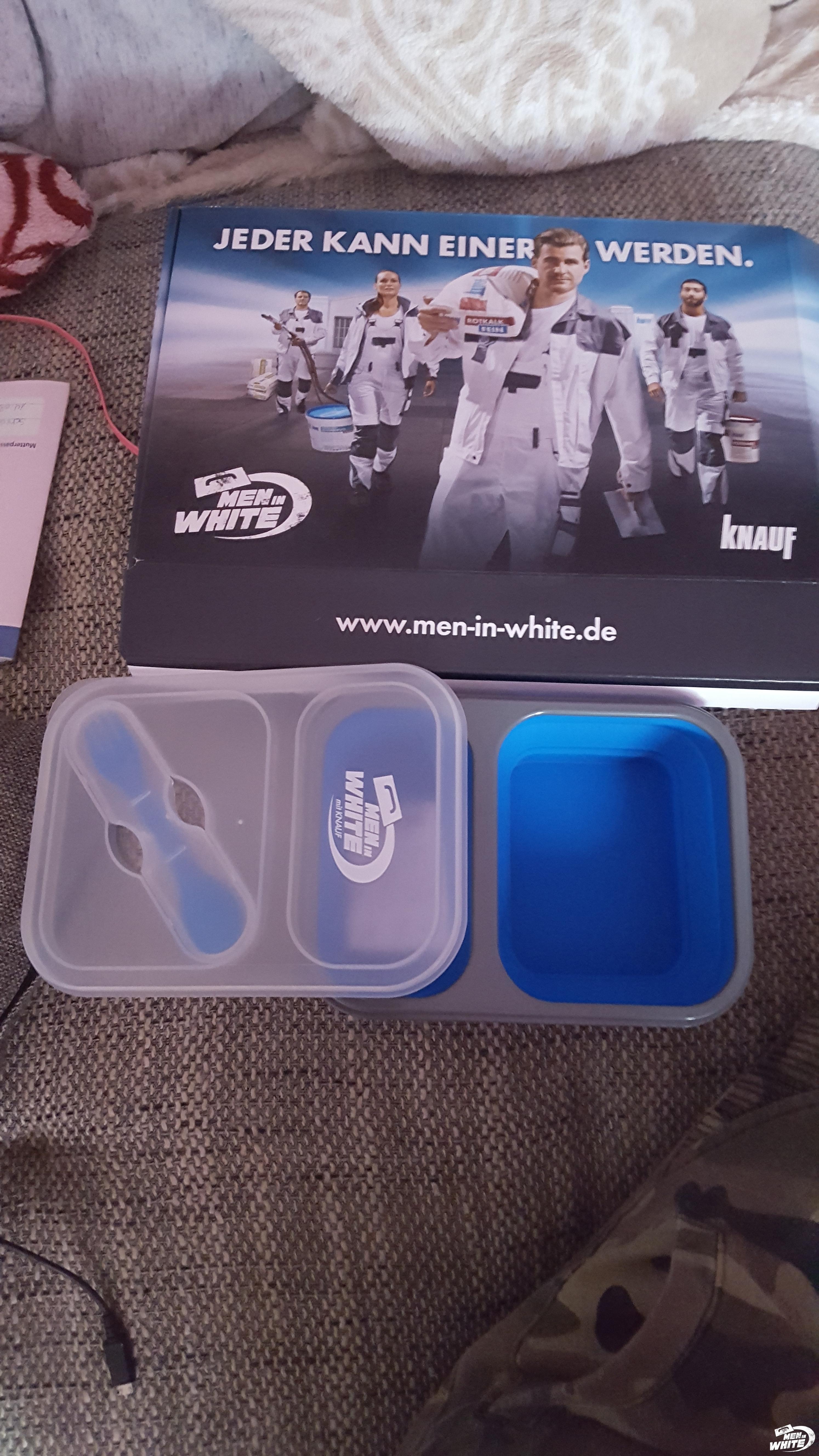Wenn Sie bereits als einer der MEN IN WHITE registriert sind, haben Sie von Knauf ein Start-Paket mit Brotzeit-Box erhalten. Wenn Sie ein witziges, originelles Foto hochladen, erhalten Sie 50 STARS zum Sammeln und Einlösen gegen attraktive Prämien.