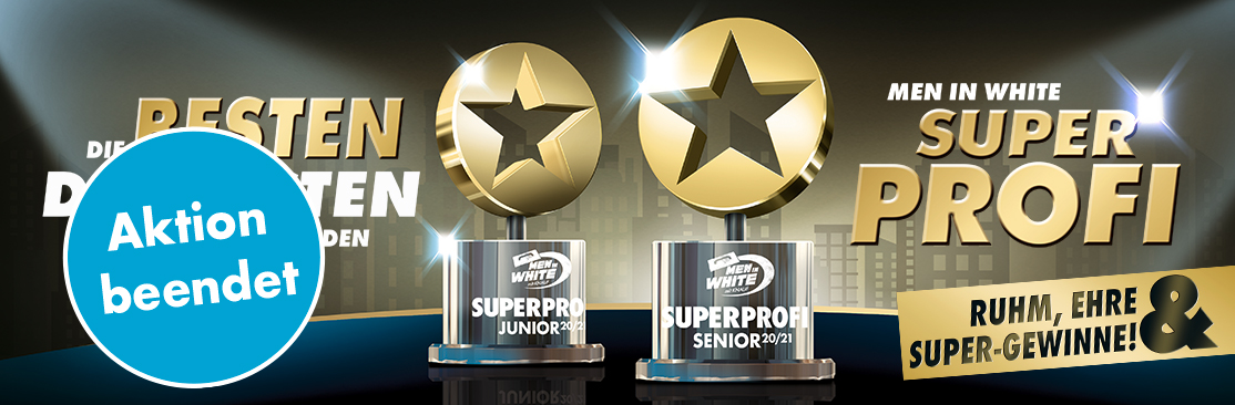 Die SuperPROFI-Aktion ist beendet. Wir haben die Besten der Besten gesucht. Die SuperPROFIS Senior und Junior in drei Regionen und deutschlandweit. Jetzt stehen die Gewinner fest. Die 20 MEN IN WHITE mit den meisten SuperSTARS erhalten jeweils ein Hilti-Paket im Wert von 1.800 Euro – und dürfen natürlich stolz den Titel SuperPROFI tragen. Herzlichen Glückwunsch!